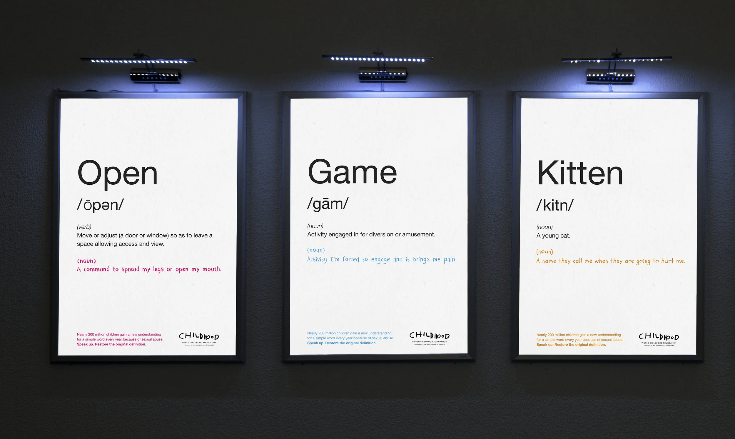 “Taboo” targets adults including parents, caregivers and professionals working with children. It utilizes the use of words and their taboo meanings to raise awareness about the problem.